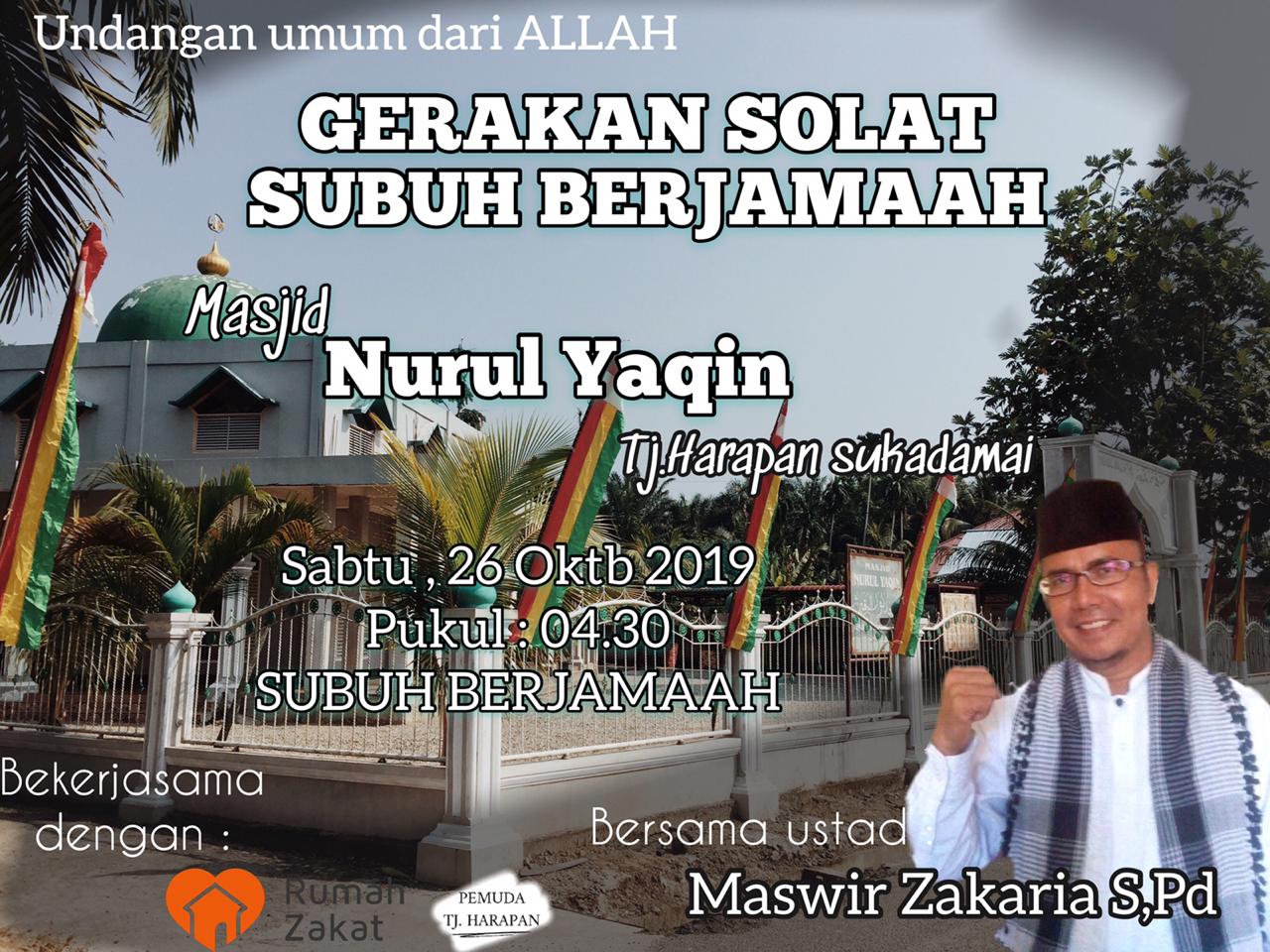 Melihat kondisi ini, pada Sabtu 26 Oktober 2019 Relawan Inspirasi Rumah Zakat menggandeng Pemuda dan Pengurus Masjid adakan Gerakan Shalat Shubuh Berjama'ah (GSSB) di Masjid Nurul Yaqin Desa Sukadamai Kecamatan Ujung Batu Kabupaten Rokan Hulu.