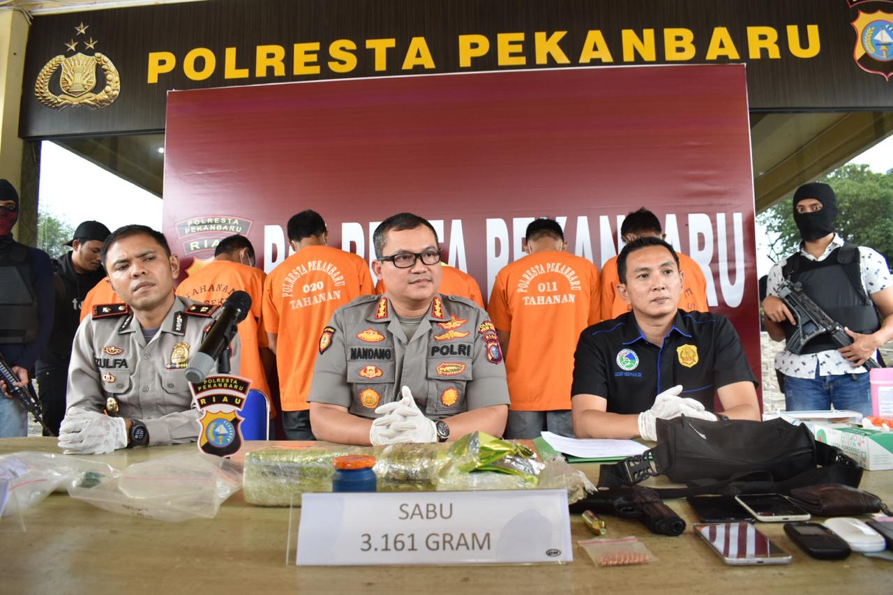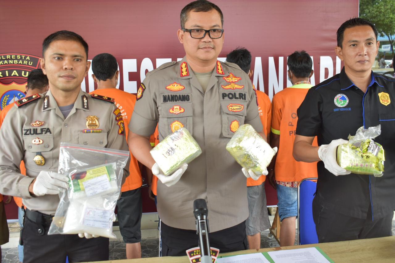 LancangKuning.com, PEKANBARU -- Polresta Pekanbaru dan Polsek Sukajadi berhasil mengamankan 4 kilogram sabu. 6 orang tersangka berhasil diciduk ditiga lokasi yang berbeda.