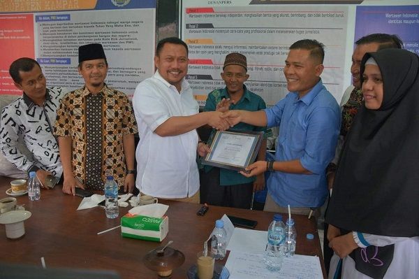 Sebagai bukti konkrit PWI Kampar dalam memerangi berita hoax (berita bohong), Ketua PWI Kampar, Akhir Yani, SE menyerahkan sertifikat penghargaan kepada Bupati Kampar, H. Catur Sugeng Susanto, SH.