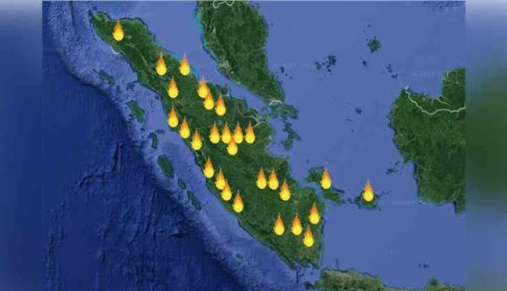 Titik panas ini terpantau di 4 provinsi yakni Aceh 4 titik, Sumbar 2 titik, Sumut 9 titik dan Riau 30 titik.