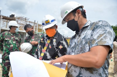 Lancang Kuning, PEKANBARU - Wakil Gubernur (Wagubri) Edy Natar Nasution kembali meninjau pembangunan Gedung Markas Korem (Makorem) 031 Wira Bima, di Jalan Sisingamangaraja, Pekanbaru, Riau, Kamis (04/11/2021).