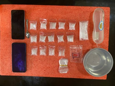 Selain itu diamankan barang bukti sebanyak 14 paket sedang dan 1 paket besar diduga narkotika jenis shabu.