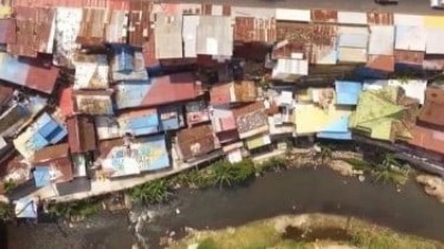 Foto: Kemiskinan dan ketimpangan nampak nyata di permukiman di bantaran sungai. (vstory)