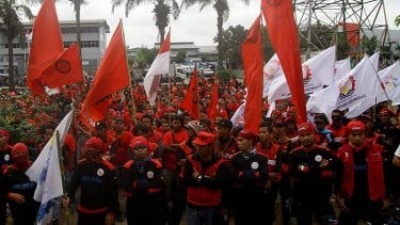Foto: Aksi Mogok Buruh Kawasan Industri Pulogadung. (VIVA.co.id/Muhamad Solihin)