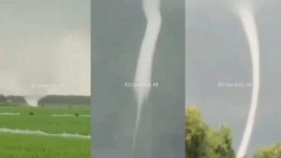 Viral Penampakan Angin Melintir di Persawahan
