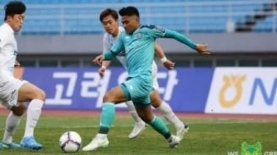 Foto: Pemain Ansan Greeners, Asnawi Mangkualam Bahar. (Ansan Greeners)