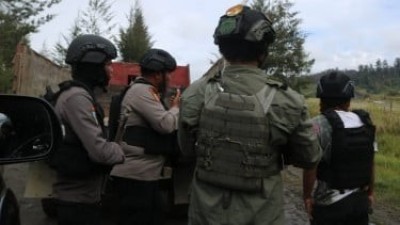 Foto: Aparat gabungan memantau pergerakan KKB usai kontak senjata. (Istimewa/Aman Hasibuan)