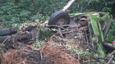 Sampai saat ini supir truk Dedek masih hilang, sementara truknya tersangkut di pohon-pohon yang ada di dinding jurang.