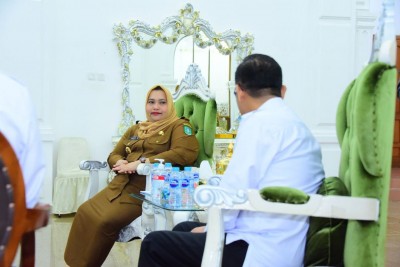Lancang Kuning, BENGKALIS -- Bupati Bengkalis Kasmarni menerima Audiensi dan Ekspose Jajaran Lembaga Penyiaran Publik Radio Republik Indonesia (LPP RRI) Pekanbaru dan Stasiun Penyiaran (SP) Bengkalis di Wisma Srimahkota, Selasa (31/1/2023).