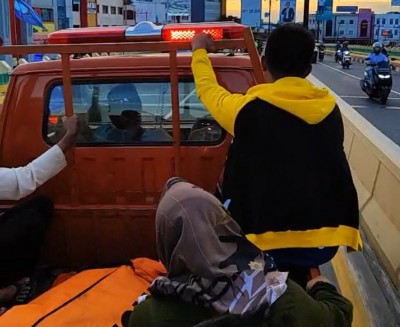 tubuh Candra Ari Kusuma dibawa ke RS Bhayangkara Polda dalam kantong mayat.(ft:basarnas)