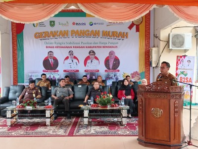 Lancang Kuning, BENGKALIS -- Bupati Bengkalis Kasmarni diwakili Plt. Sekda dr. Ersan Saputra membuka Gerakan Pangan Murah dalam rangka stabilisasi pasokan dan harga pangan Kabupaten Bengkalis.