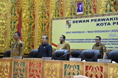 Paripurna dipimpin Ketua DPRD Pekanbaru Muhammad Sabarudi ST, di dampingi dua wakilnya Ginda Burnama ST MT dan T Azwendi Fajri SE, serta para anggota DPRD Pekanbaru lainnya. Dari Pemko Pekanbaru diwakili Sekda Kota Pekanbaru, Indra Pomi Nasution, dan turut dihadiri oleh kepala OPD dan unsur Forkompimda.