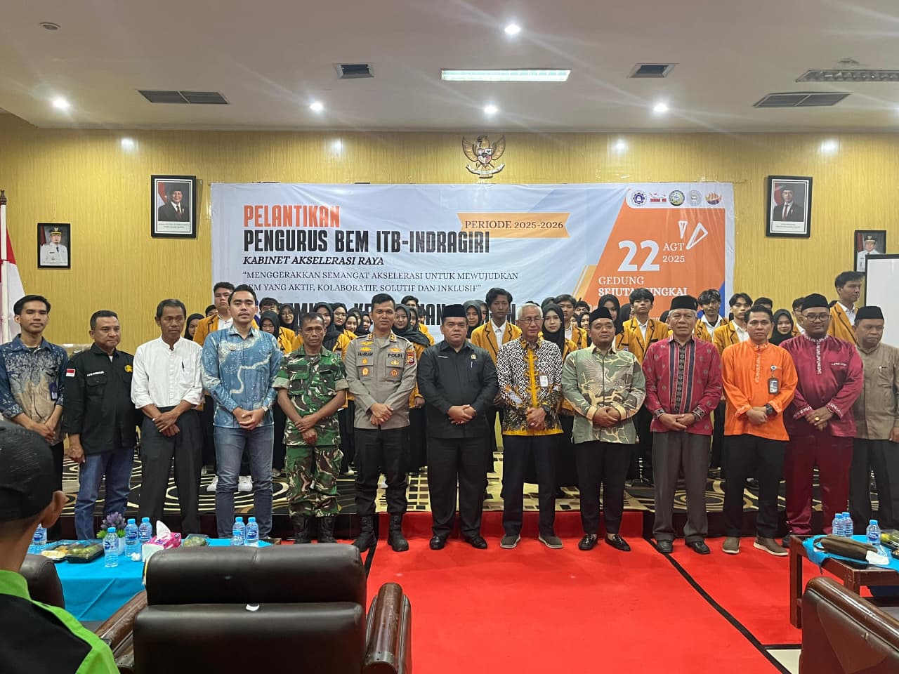Lancang Kuning, INHU – Badan Eksekutif Mahasiswa (BEM) Institut Teknologi dan Bisnis Indragiri (ITB Indragiri) resmi melantik pengurus baru periode 2025–2026 dengan Kabinet Akselerasi Raya, dalam sebuah seremoni yang berlangsung khidmat di Gedung Sejuta Sungkai, Kota Rengat, Jumat (22/8/2025).