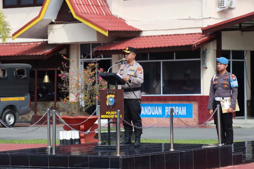 “Marilah kita bersama-sama bertakwa kepada Tuhan Yang Maha Esa, menjaga keselamatan dalam bertugas, meningkatkan disiplin, serta mewujudkan pelayanan kepolisian yang bersih dari korupsi, kolusi, dan nepotisme. Kita semua bertanggung jawab menjaga Kabupaten Indragiri Hilir agar tetap aman, tertib, dan taat hukum,” tegasnya.