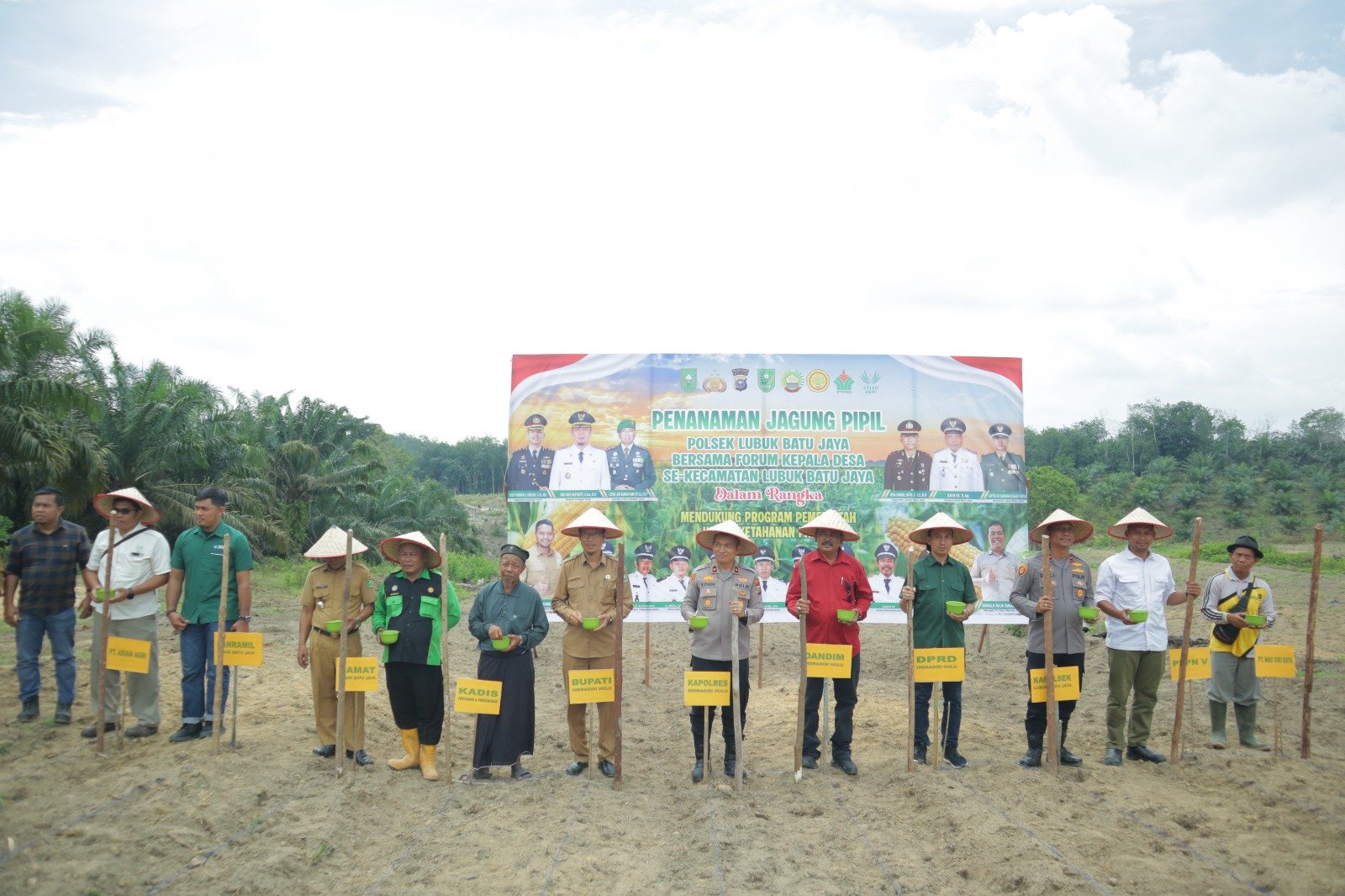 Kegiatan penanaman jagung pipil ini dipimpin langsung oleh Wakapolres Indragiri Hulu, KOMPOL Manapar Situmeang, S.H., S.I.K., M.H., mewakili Kapolres Inhu AKBP Fahrian Saleh Siregar, S.I.K., M.Si. Acara turut dihadiri oleh berbagai unsur forkopimcam, pejabat pemerintah daerah, serta perwakilan perusahaan perkebunan di wilayah tersebut.