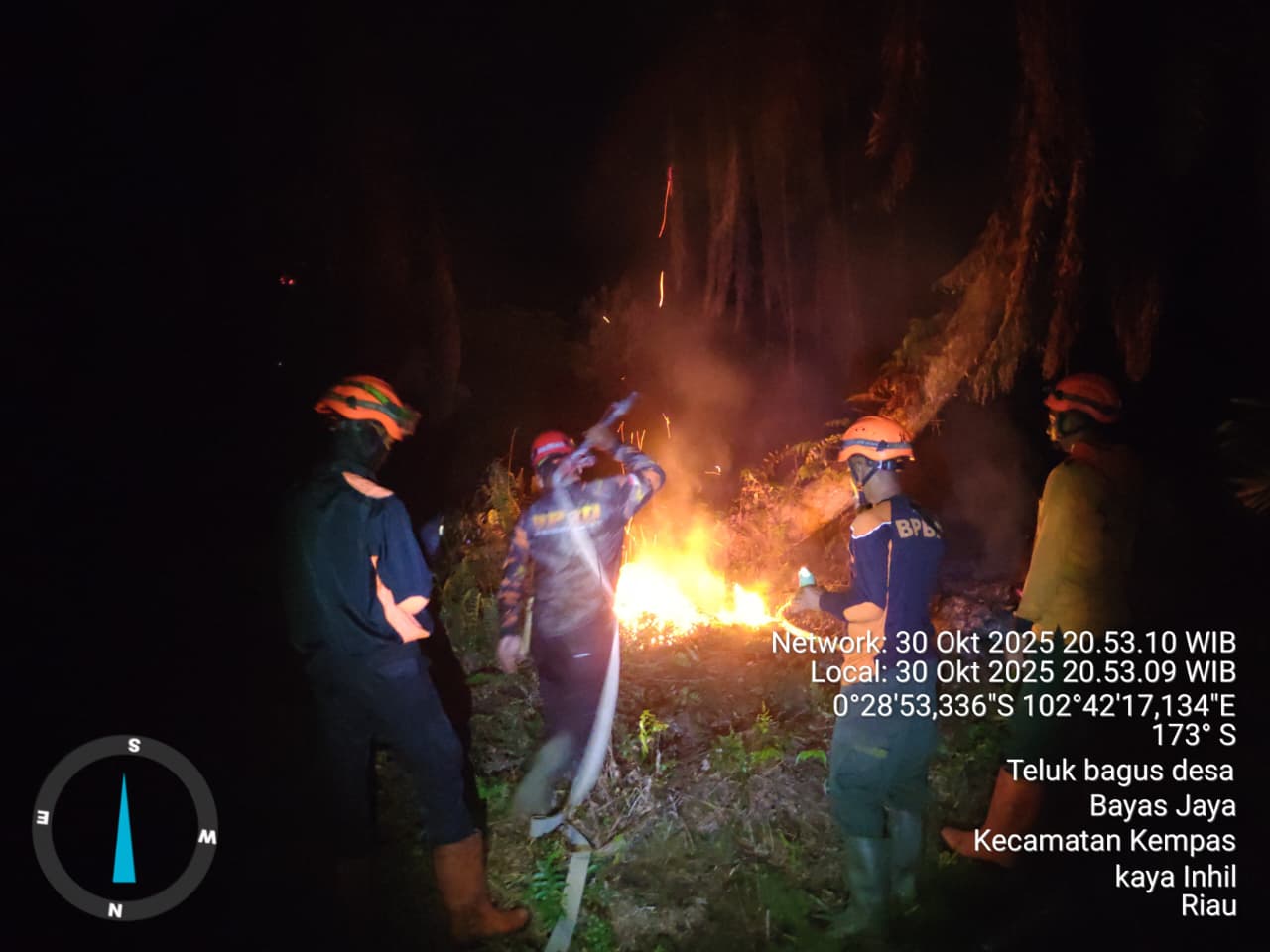 Lancang Kuning, INHIL — Badan Penanggulangan Bencana Daerah (BPBD) Kabupaten Indragiri Hilir terus melakukan upaya penanggulangan kebakaran lahan yang terjadi di Desa Bayas Jaya, Kecamatan Kempas. Hingga Kamis malam (30/10/2025), dua tim reaksi cepat (TRC) masih berjibaku di lapangan untuk melakukan pemadaman dan pendinginan di lokasi kebakaran.