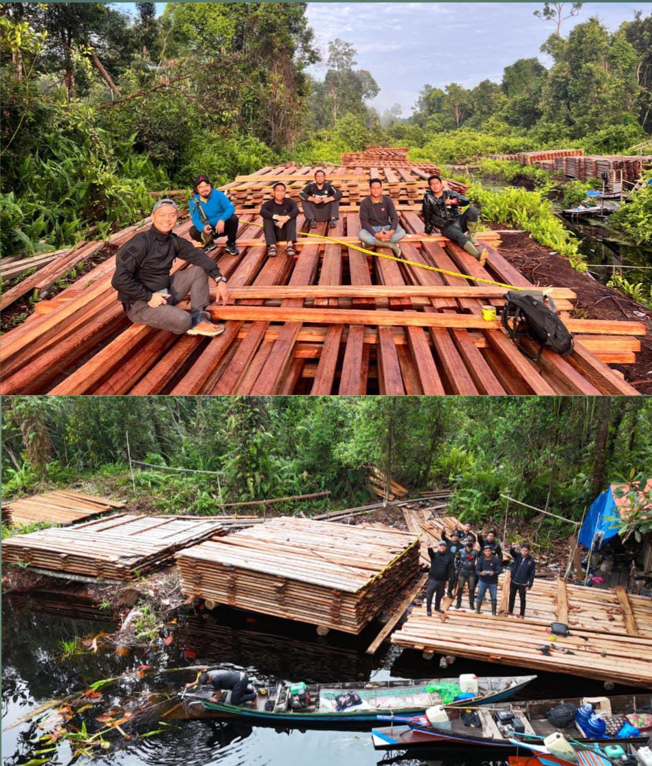 Pukul 18.00 WIB, perjuangan panjang itu berbuah hasil. Tim menemukan tumpukan kayu olahan illegal logging berbentuk papan dan broti dengan total volume sekitar 300 kubik, terbentang sepanjang tepi kanal.