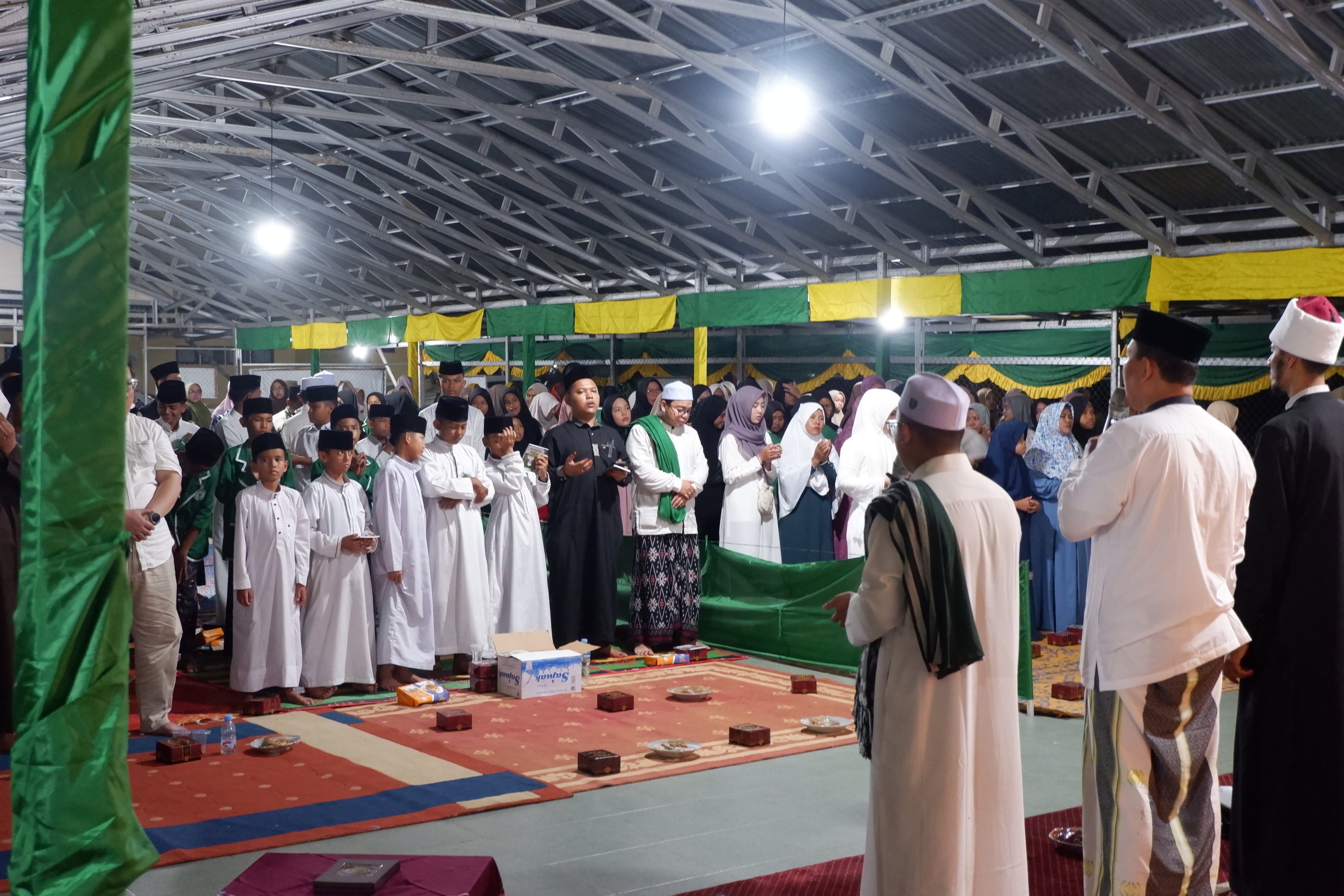 Rangkaian kegiatan diawali dengan pembacaan Maulid Simtudduror yang dipandu secara syahdu oleh Habib Farhan Ba’bud, yang diikuti dengan khusyuk oleh ratusan jamaah dan santri.