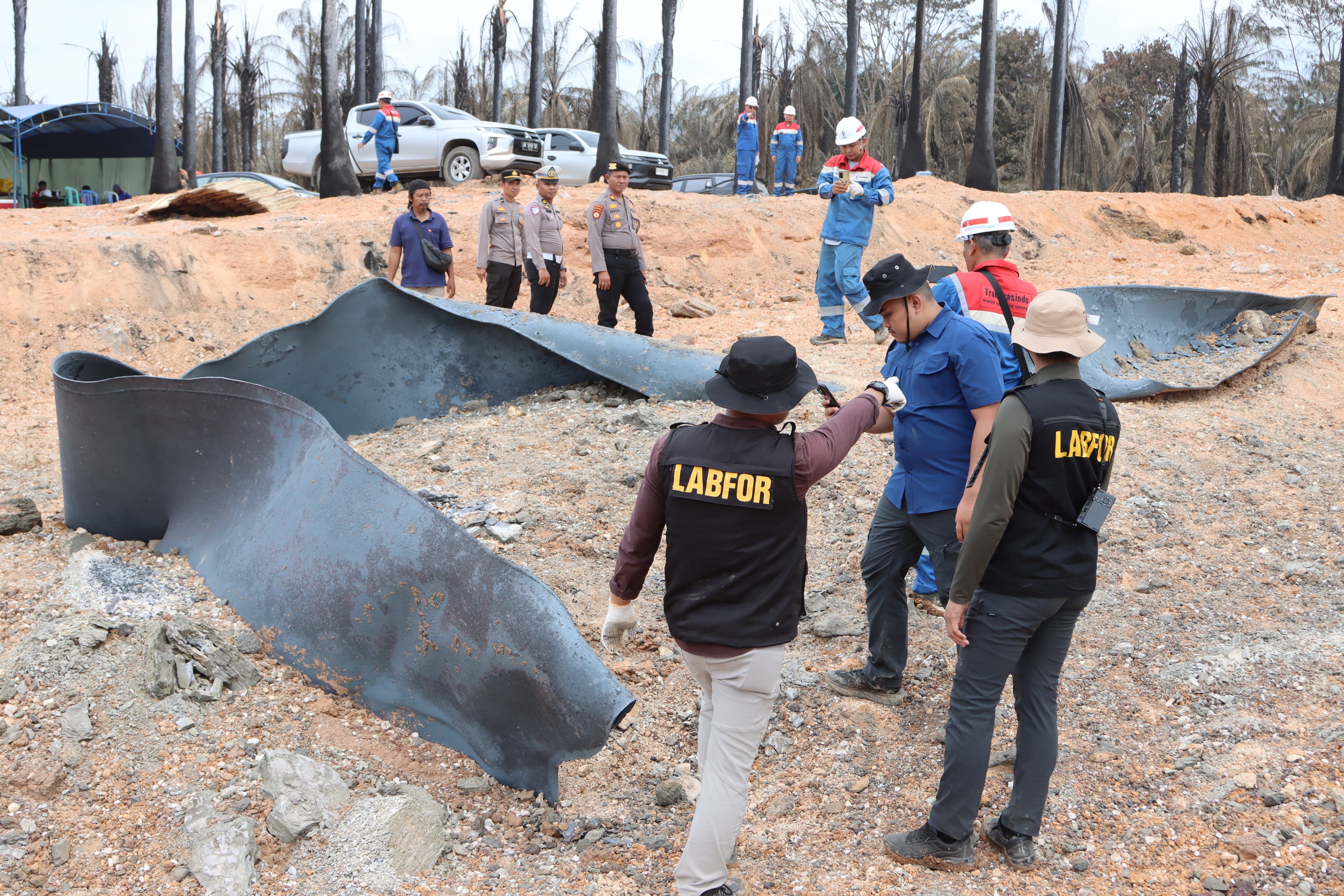 Tim Bidlabfor Polda Riau melakukan pemeriksaan menyeluruh di area terdampak, mulai dari titik sumber kebakaran hingga kondisi fisik pipa gas, guna mengamankan barang bukti dan data teknis yang dibutuhkan untuk kepentingan penyelidikan mendalam.
