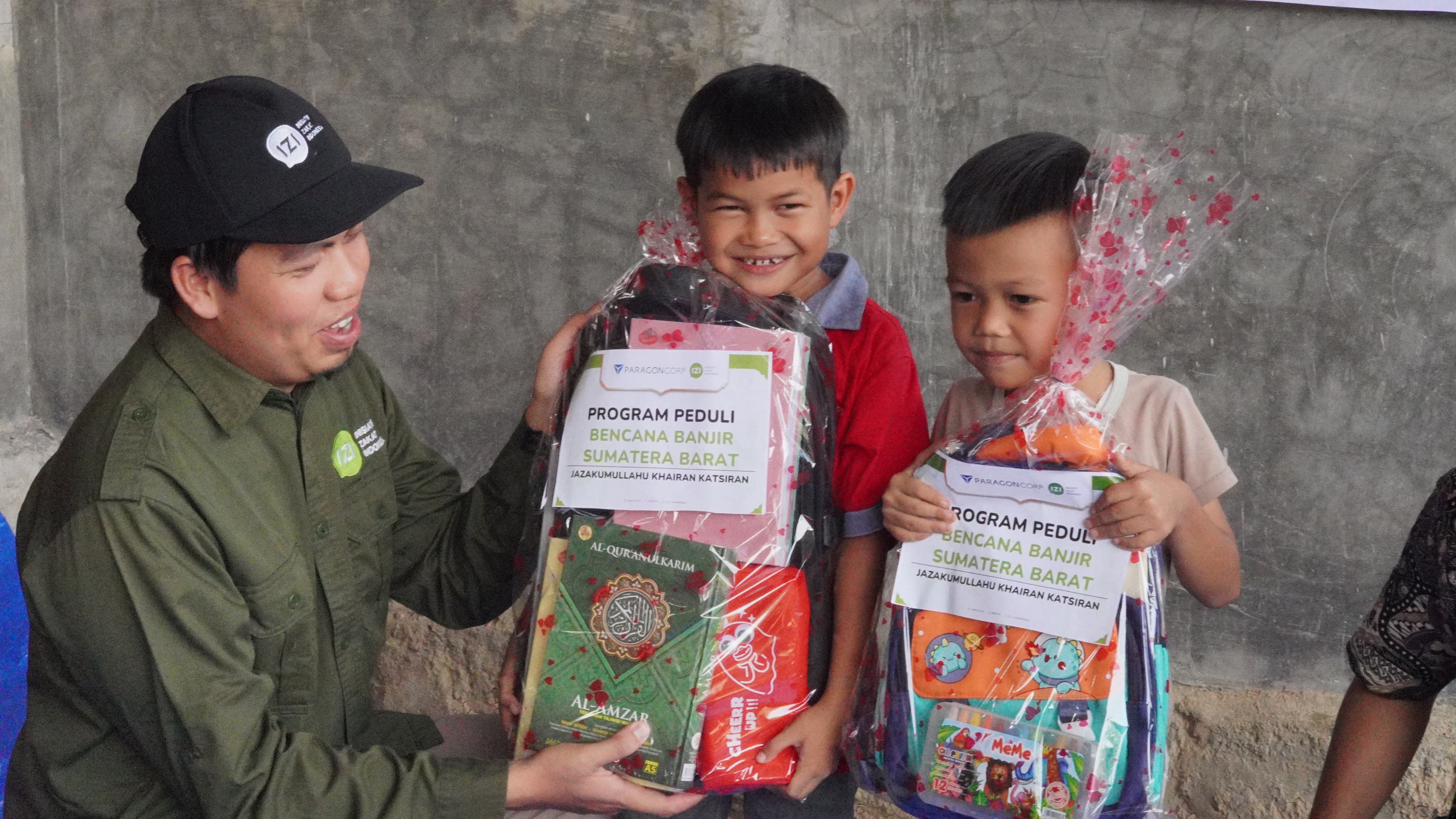 Dalam agenda tersebut, IZI Sumatera Barat bersama Paragon Corp menyalurkan sebanyak 51 paket bingkisan perlengkapan sekolah yang berisi kebutuhan dasar anak seperti tas sekolah,alat tulis, Al Quran dan juga 11 Paket Perlengkapan Balita.