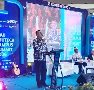 Prof Dr Muhammad Najib, STP M.M., Direktur Kelembagaan Dirjen Dikti, Kemendiktisaintek di Riau Edutech Campus Summit 2026 di Gelanggang Remaja, Pekanbaru.(ft:rie-lancangkuning.com)