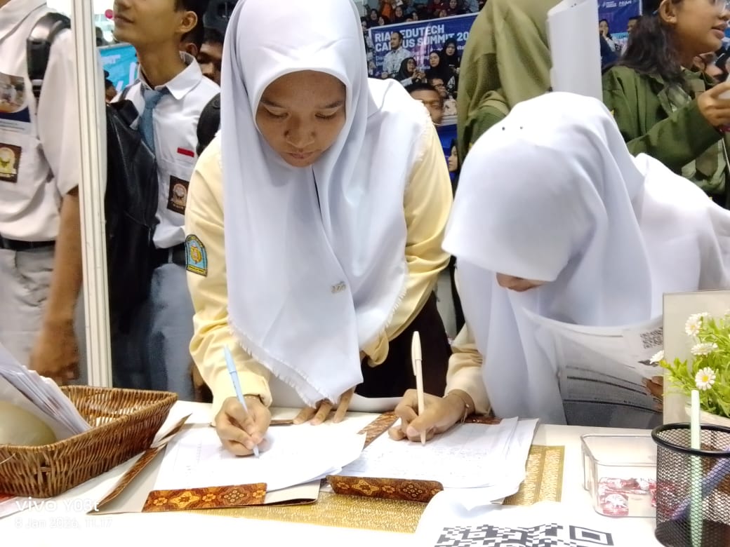 LANCANGKUNING.COM,Pekanbaru-Permainan beat saber Virtual Reality yang ada di both Garuda Cyber Indonesia (GCI) di Riau Edutech Campus Summit 2026 banyak diminati peserta SMA yang mengikuti kegiatan di Gelanggang Remaja, Pekanbaru ini.