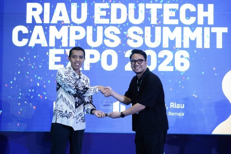 LANCANGKUNING.COM,Pekanbaru-Universitas Islam Riau (UIR) kembali menorehkan prestasi membanggakan dengan meraih Juara 1 Kampus Terfavorit pada ajang Riau Edutech Campus Summit 2026. Kegiatan bergengsi ini berlangsung selama tiga hari, mulai Rabu hingga Jumat, 7 sampai 9 Januari 2026, bertempat di GOR Remaja Pekanbaru. Penghargaan tersebut diberikan atas partisipasi aktif serta kontribusi terbaik UIR dalam menyukseskan pameran pendidikan yang berhasil menarik kunjungan 4.325 siswa SMA dan SMK sederajat dari berbagai daerah di Provinsi Riau.