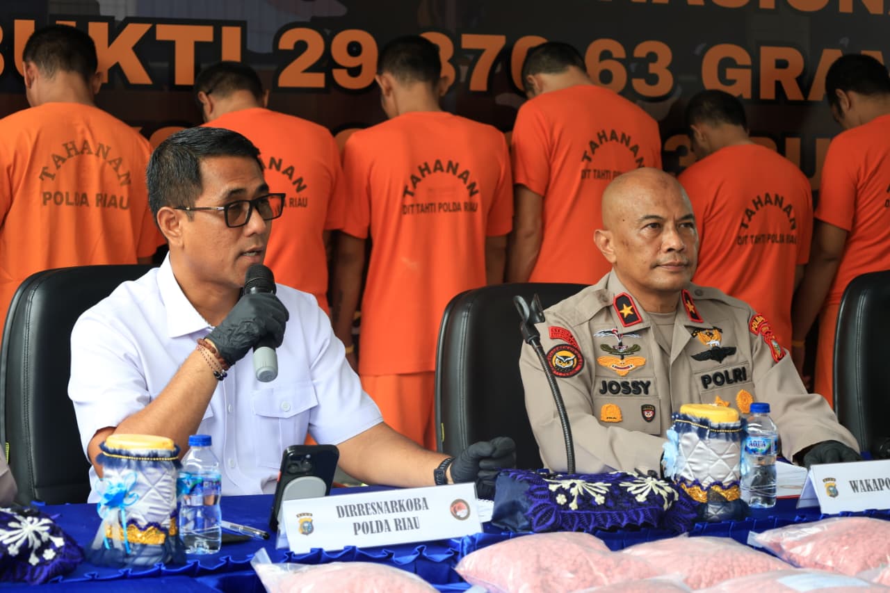 Brigjen Jossy menyampaikan penindakan terhadap para pelaku narkotika ini merupakan wujud ketegasan Polda Riau dalam rangka menyelamatkan generasi penerus bangsa dari ancaman narkoba.