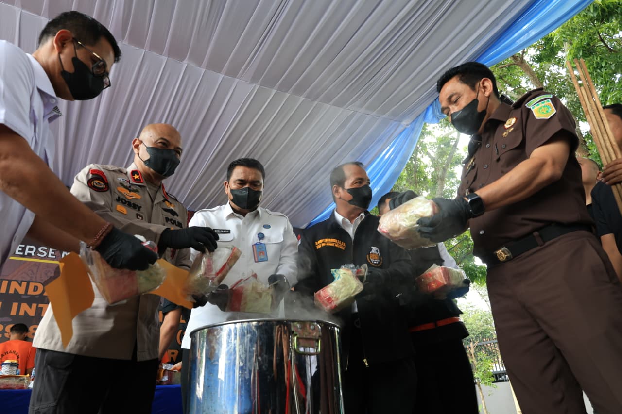 Lancang Kuning, PEKANBARU - Polda Riau mencegah peredaran narkotika senilai Rp 43,9 miliar jelang tahun baruan, pada 30 Desember 2025. Narkoba tersebut kini dimusnahkan.