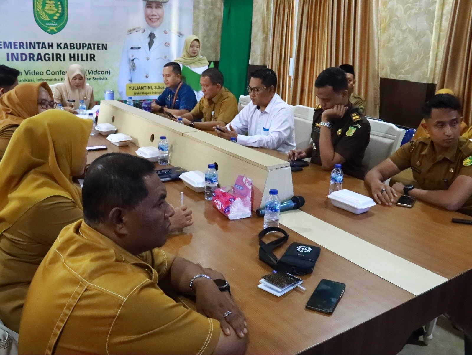 Lancang Kuning, INHIL — Wakil Bupati Indragiri Hilir, Yuliantini, mengikuti Rapat Koordinasi Pengendalian Inflasi Daerah Tahun 2026 yang dirangkaikan dengan evaluasi dukungan pemerintah daerah terhadap Program 3 Juta Rumah, bertempat di E-Bilik Diskominfopers Kabupaten Indragiri Hilir, Senin, 12 Januari 2026.