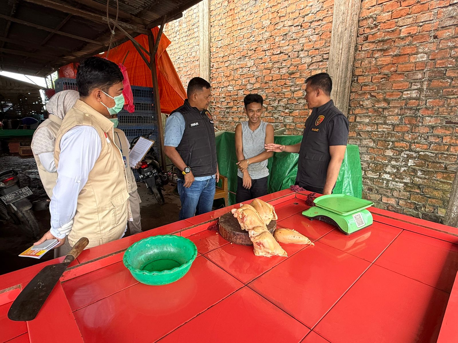 Pengecekan juga dilakukan terhadap kios penjual daging ayam potong di Pasar Pagi Mayang, Jalan Telaga Biru, Kelurahan Tembilahan Kota, yang memperoleh pasokan ayam dari distributor Tri Nofri Arisandi untuk dijual secara eceran kepada masyarakat.