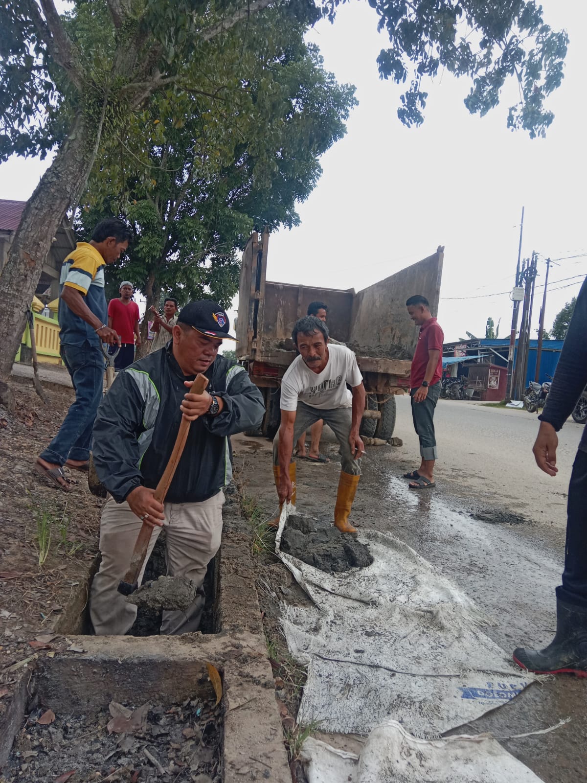 Foto: Ketua DPRD Inhu Sabtu P. Sinurat (pegang cangkul) saat melakukan pembersihan masuk selokan