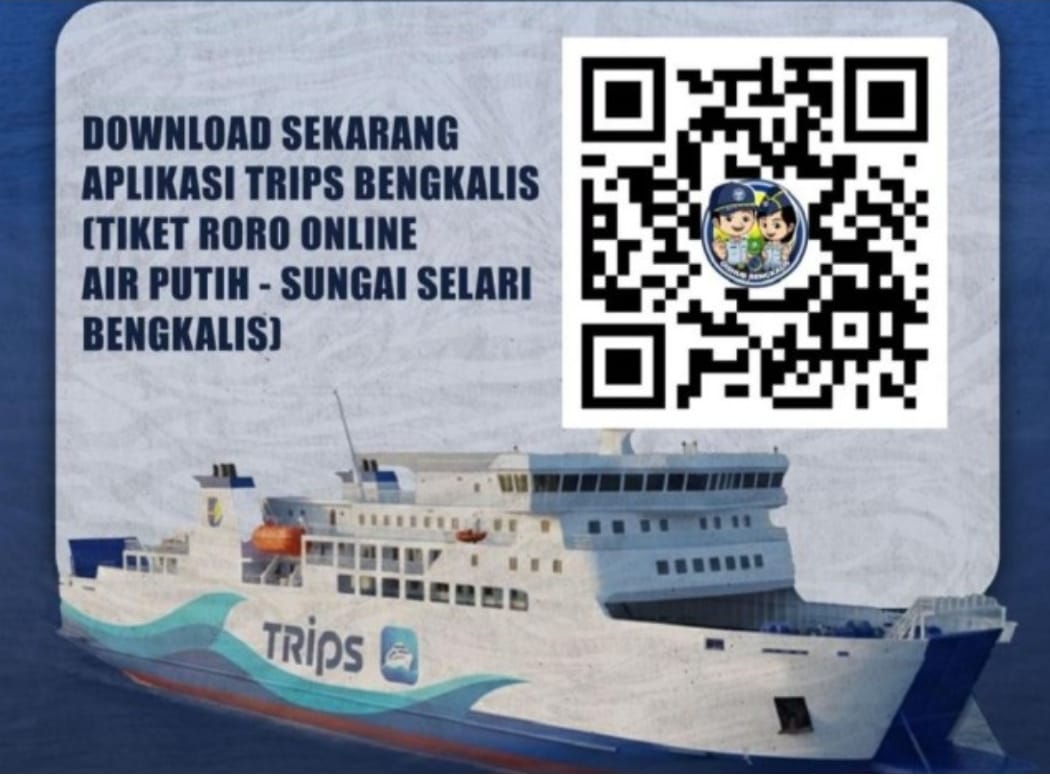 Melalui aplikasi TRIPS Bengkalis, masyarakat kini dapat membeli tiket kapal Roll On Roll Off (RoRo) secara online tanpa harus mengantre di pelabuhan.