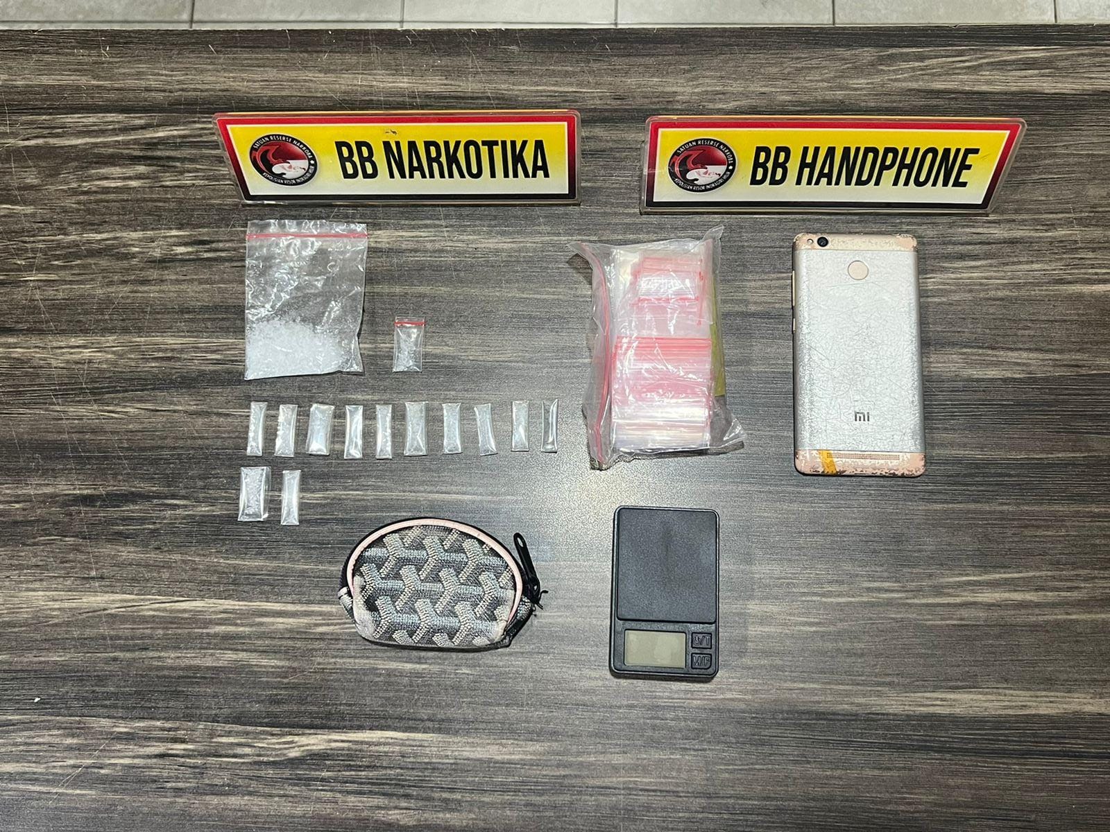 Dari hasil penggeledahan yang disaksikan oleh warga setempat, petugas menemukan sejumlah barang bukti, di antaranya 12 paket sabu dalam plastik bening, dua plastik klip berisi sabu, satu unit timbangan digital, satu dompet, plastik klip kosong, serta satu unit handphone.