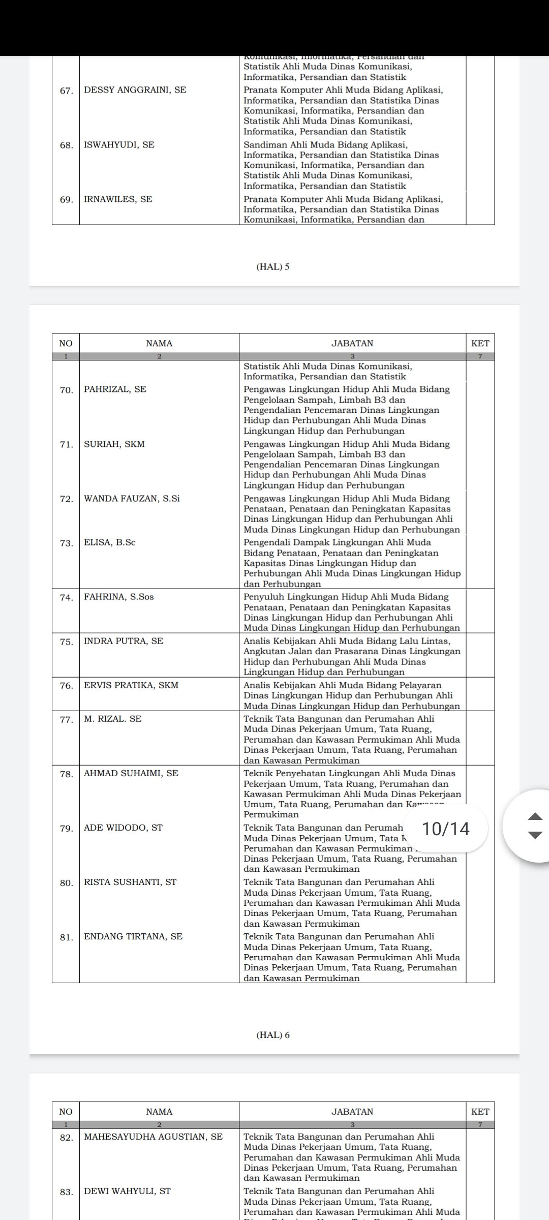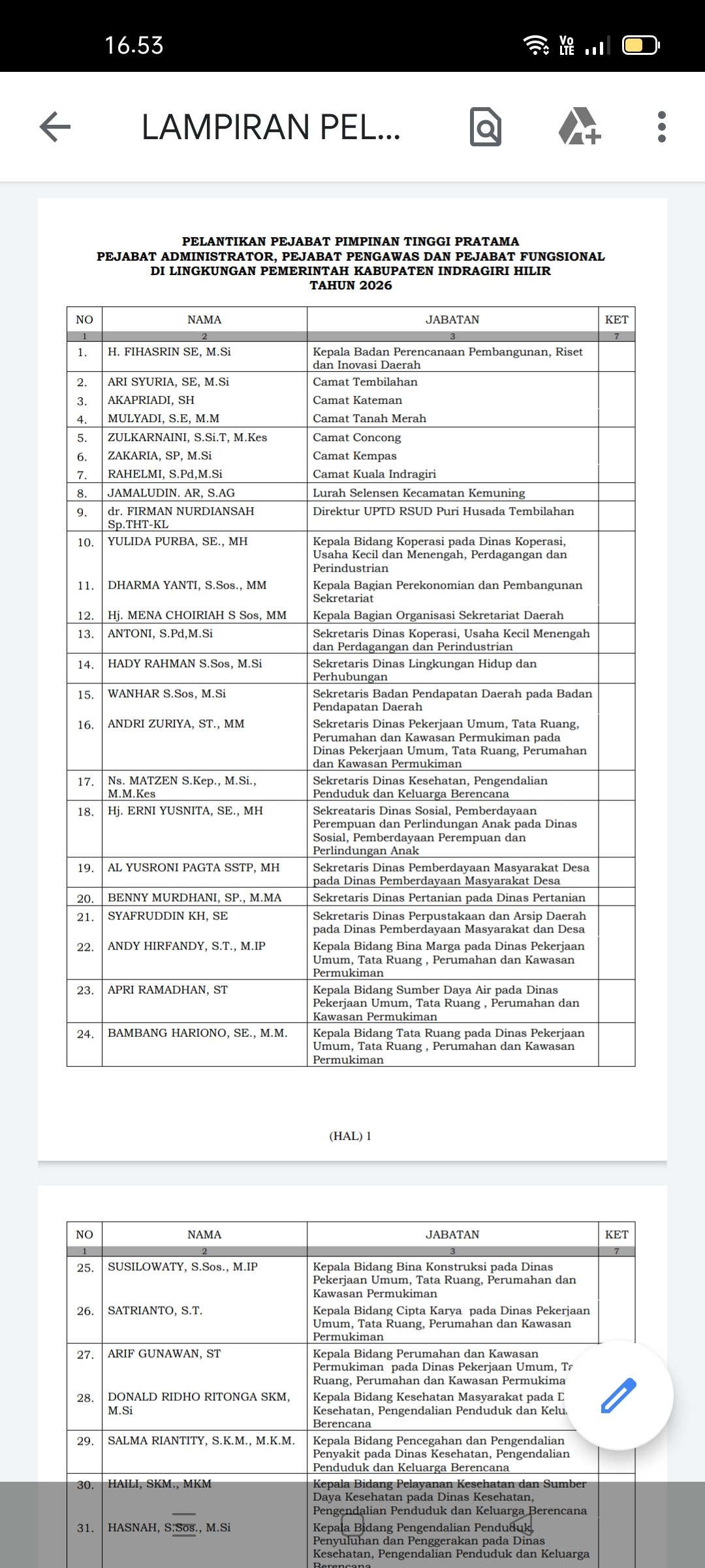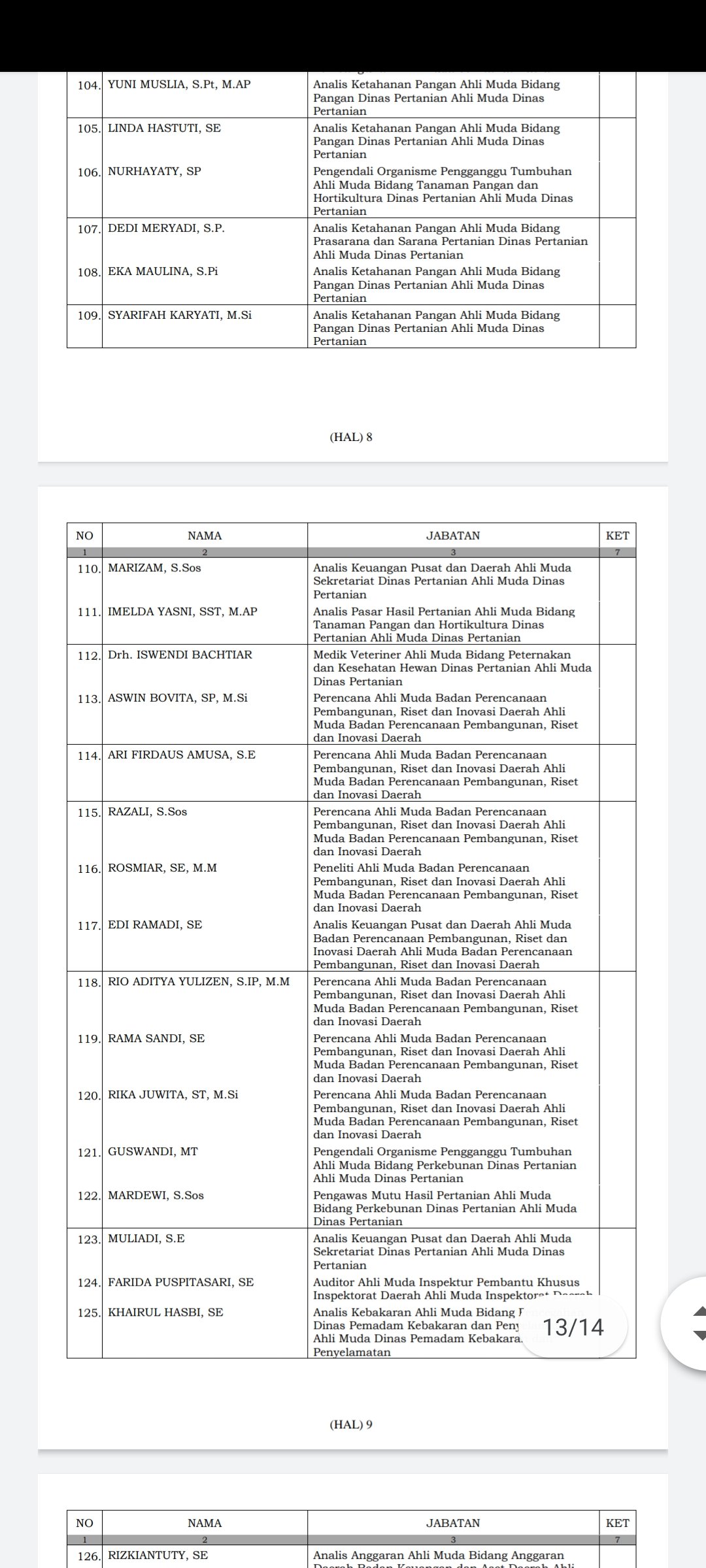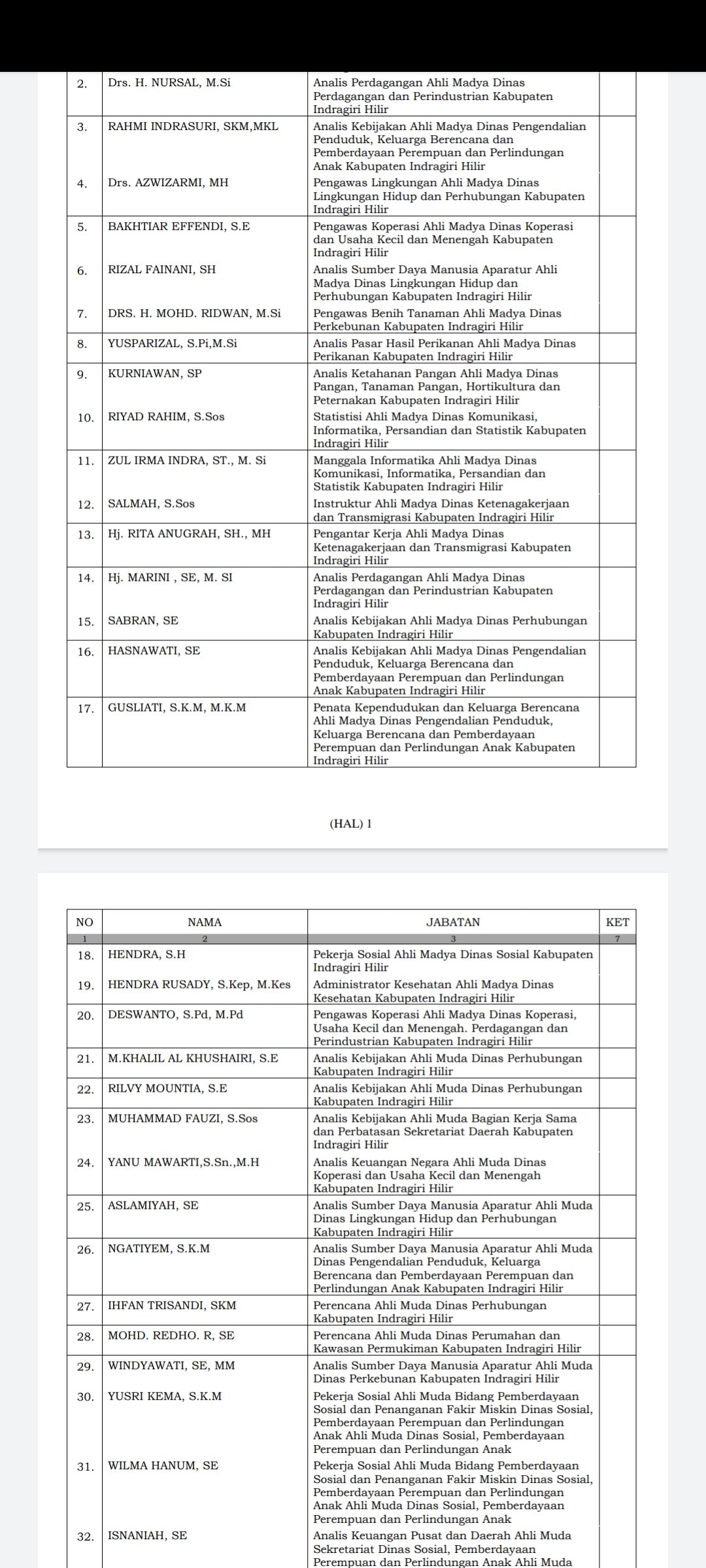 Deretan ratusan nama yang dilantik sebagai berikut: