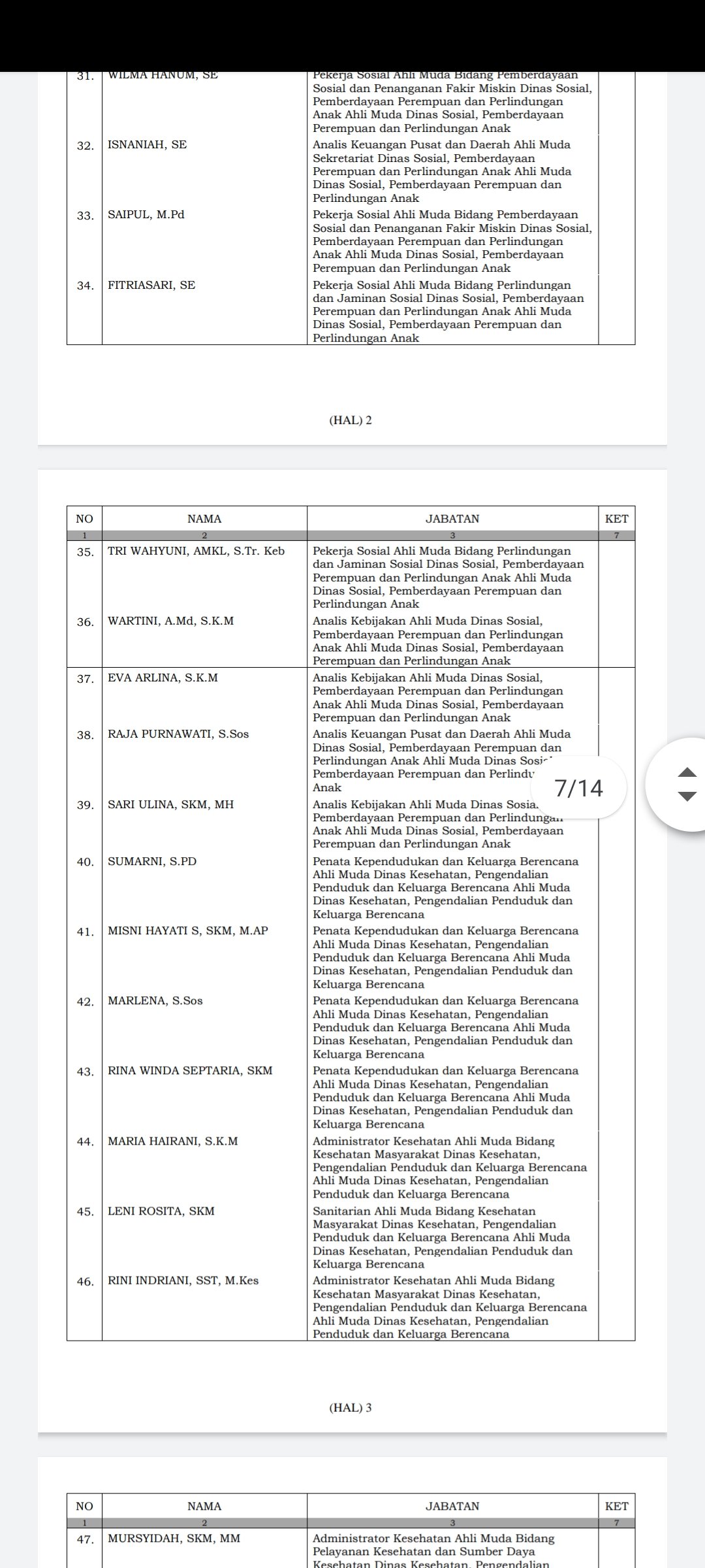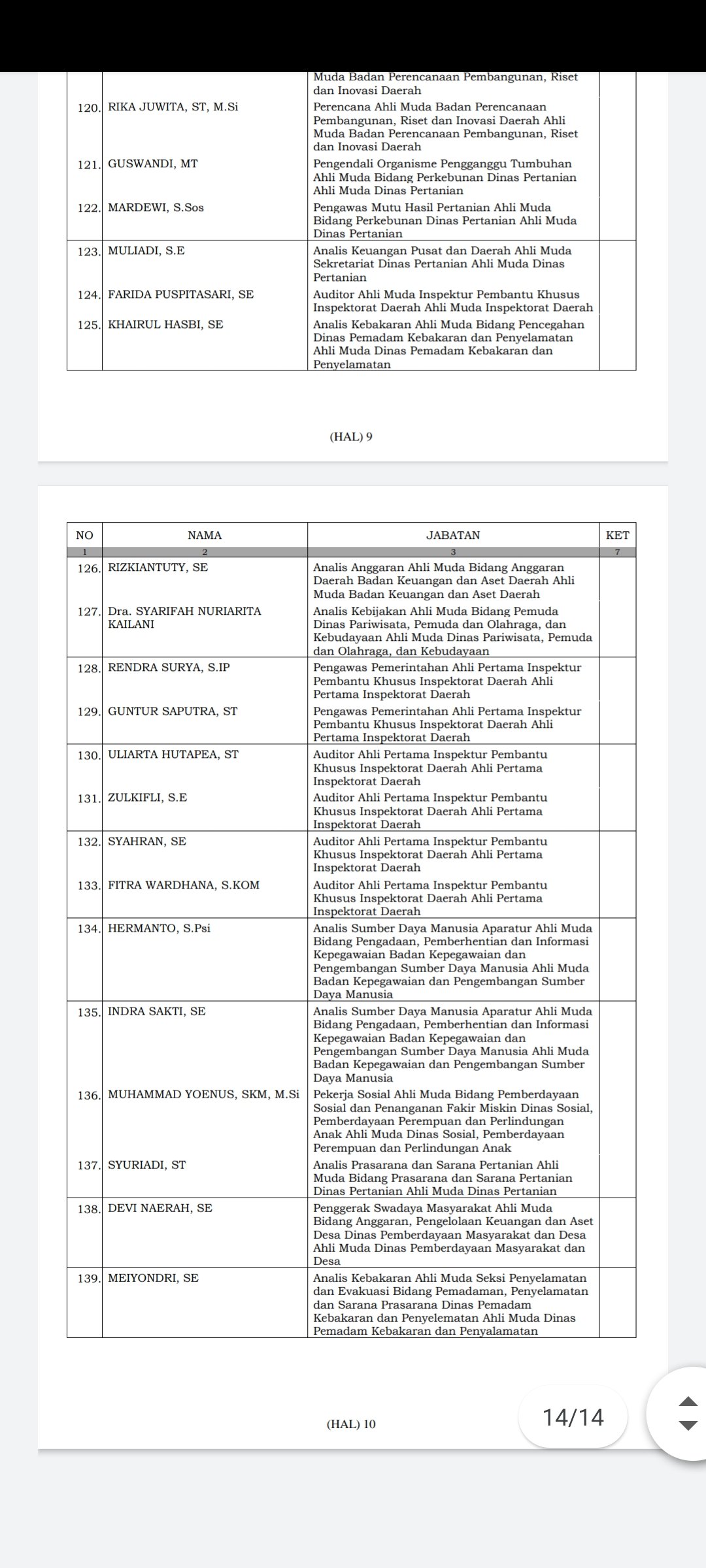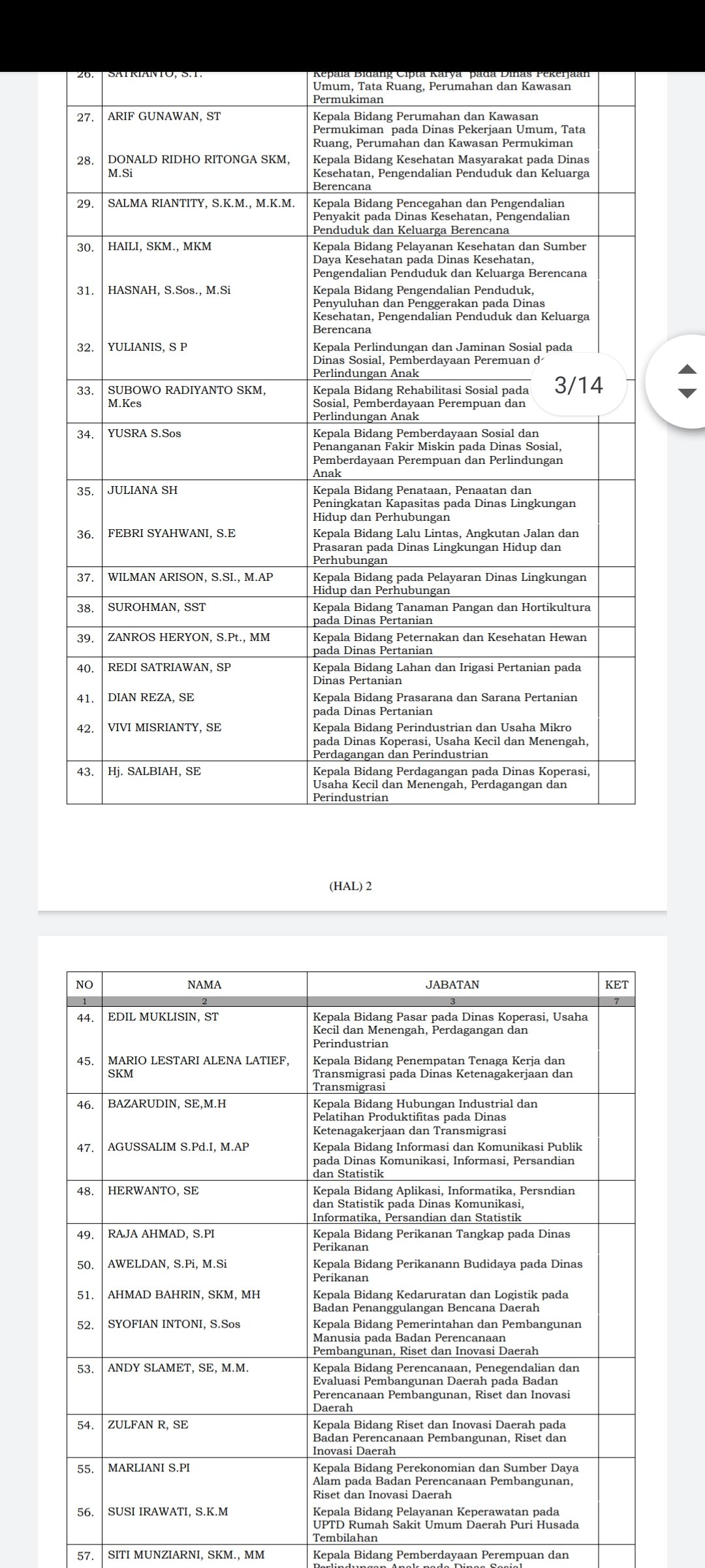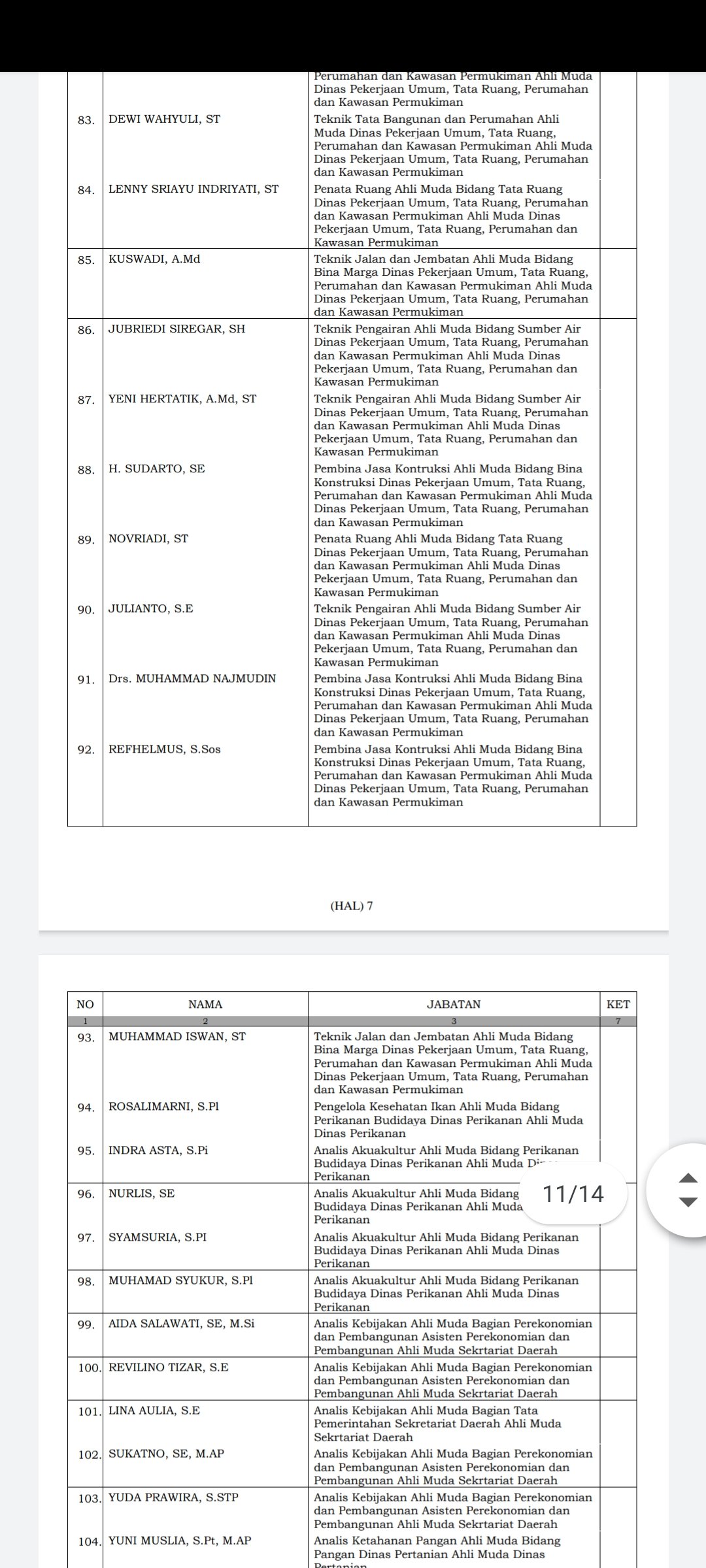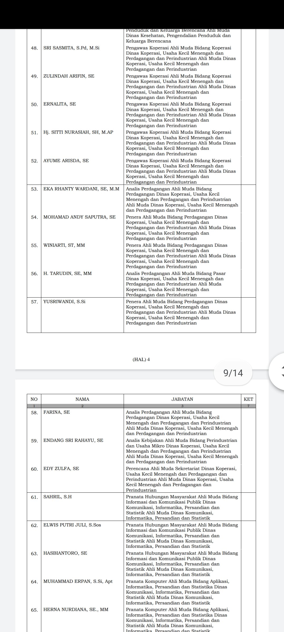 Deretan ratusan nama yang dilantik sebagai berikut:
