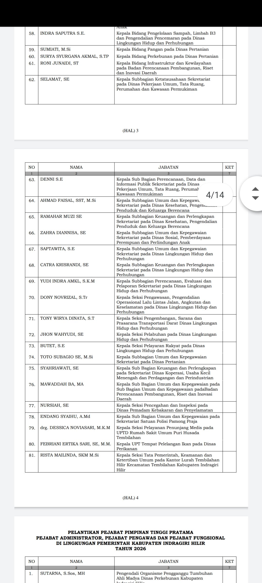 Lancang Kuning, INHIL – Bupati Indragiri Hilir, Herman, melantik pejabat pimpinan tinggi pratama, pejabat administrator, pejabat pengawas, serta pejabat fungsional di lingkungan Pemerintah Kabupaten Indragiri Hilir, Senin (13/4/2026).